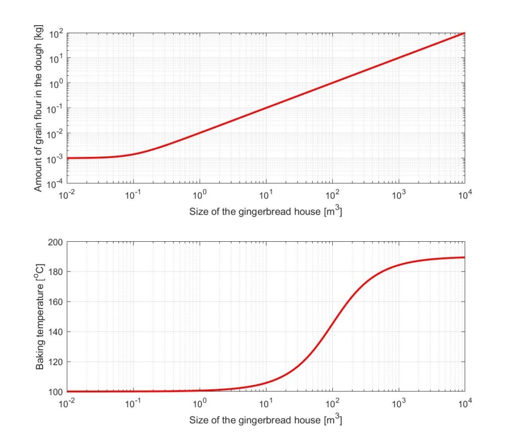 This year, Santa’s castle is abuzz with excitement as the elves enthusiastically participate in the inaugural Christmas Contest for Gingerbread House Baking. Each elf is putting forth their unique recipe for crafting this beloved sweet decoration. These recipes include specific guidelines on adjusting the amount of grain flour in the dough [in kilograms] and the baking temperature [in degrees Celsius] based on the gingerbread house’s size.